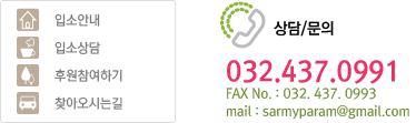 인천시 남동구 고잔로 20 (고잔동 186) 원장:정승영 | Tel. 032.437.0991~2 / Fax. 032.437.0993 | E-mail. pyungkang71@naver.com