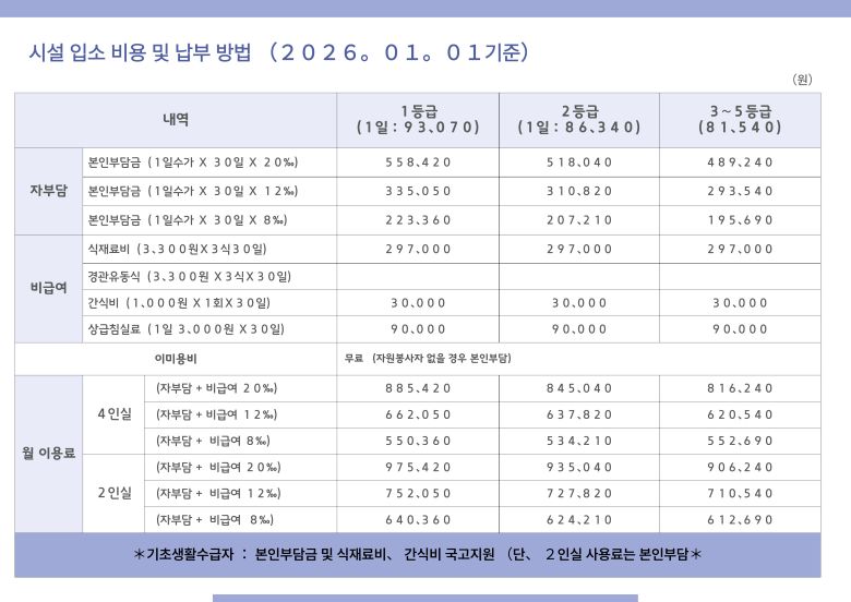 입소안내 > 시설 급여 안내 1 페이지