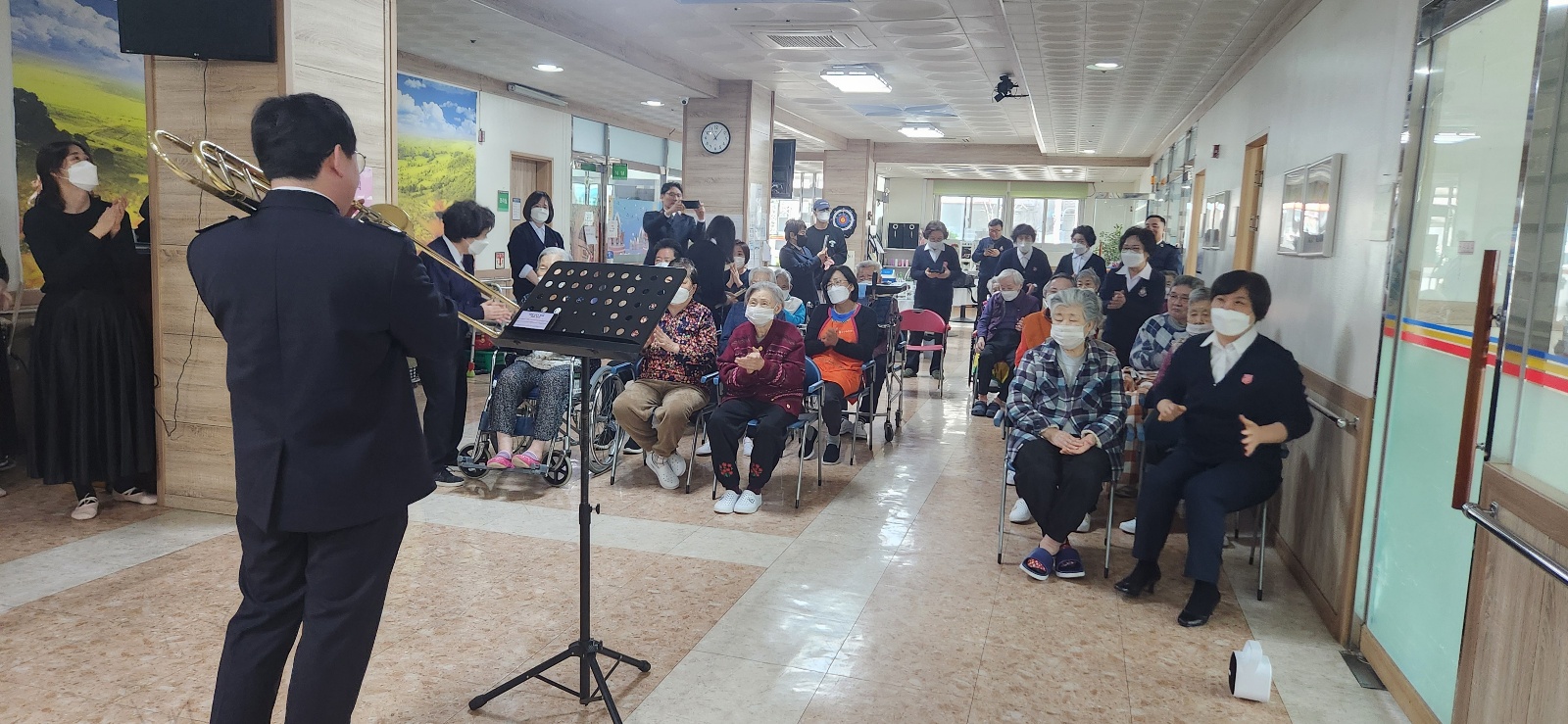 구세군의 멋진 관악기 연주와 난타공연에 흥겨워하시고 즐거워하셨답니다~~