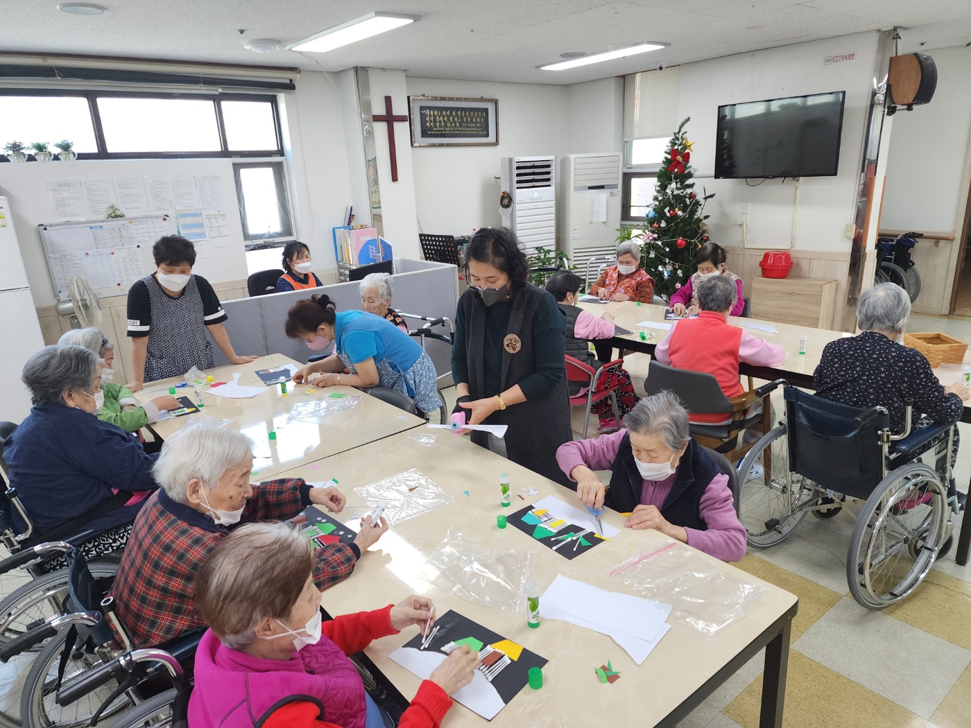 1월 미술치료는 다양한 주제와 재료를 가지고 강사의 지시에 따라 즐겁게 치료했답니다.
