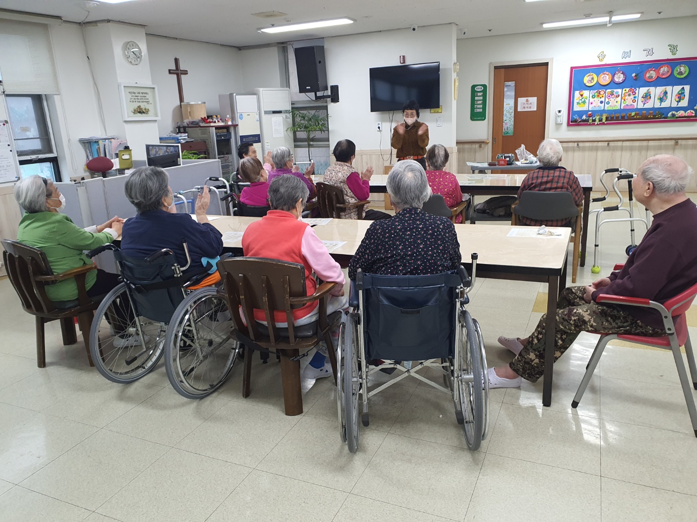 흥겨운 음악에 맞추어 체조하며 여가시간을 즐겁게 보내셨답니다!!!