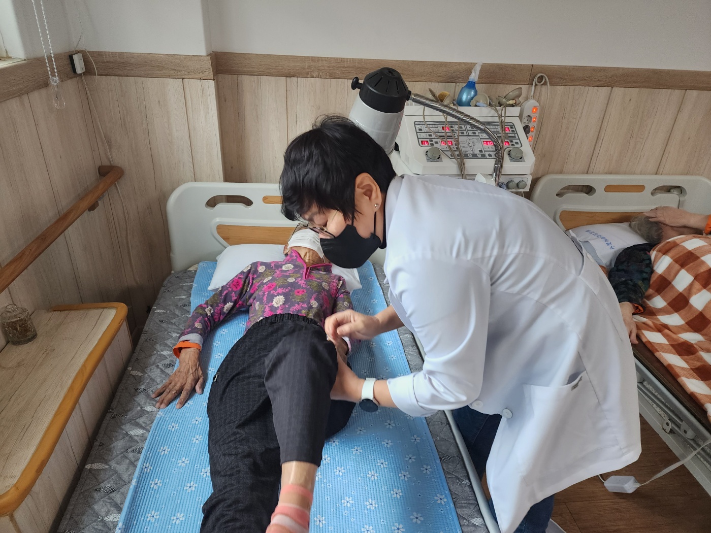 어르신의 건강 및 현재 상태에 맞추어 계획을 세우고 그 계획에 따라 물리치료를 진행하고 있답니다. 어르신 한 분 한 분 치료실과 개별생활실에 직접 찾아가 서비스를 제공하고 있습니다.