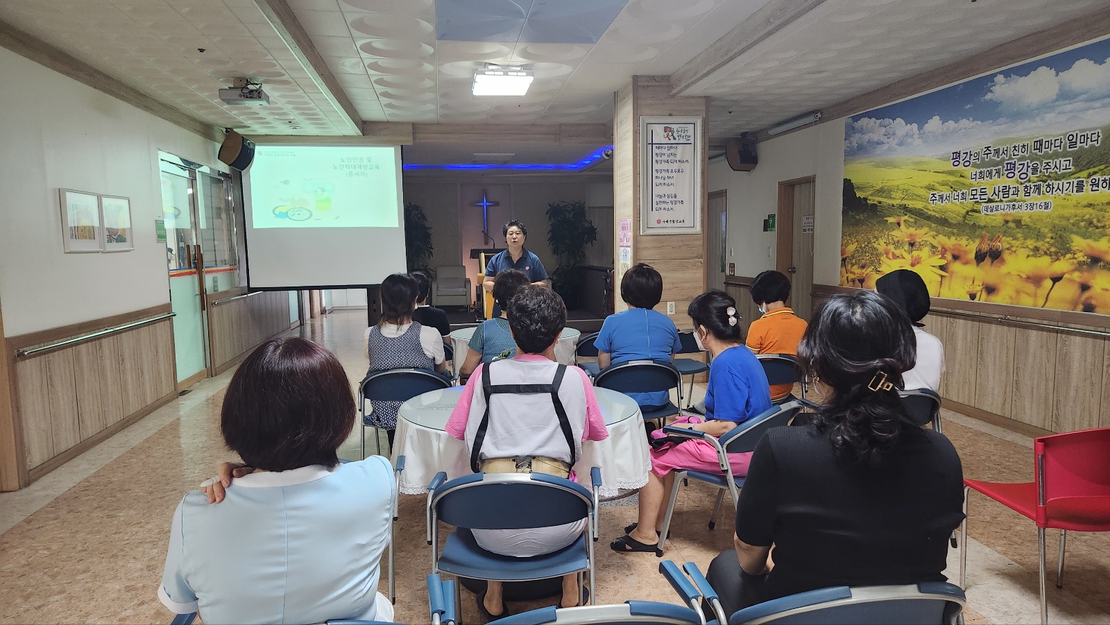 지난 9월11일 부터 19일까지 진행하였습니다. 노인을 돌보는 종사자 교육은 매번 강조해도 부족함이 없습니다. 이번 분기의 중점 과제는 노인 학대에 대한 개념을 정리하고 동영상 자료(시설 중심 및 사례)를 준비하여 실제 사례를 예시하고 예방하는 실천 방안을 논하며 학대 예방에 대한 강조와 중요성에 대한 교육을 하였습니다.