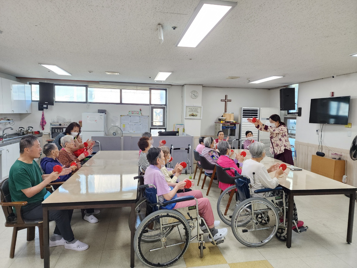 흥겨운 노래와 익숙한 가락에 절로 어깨를 들썩이며 즐거워하시는 음악 치료로 다양한 악기와 교구를 이용하여 진행한답니다~~