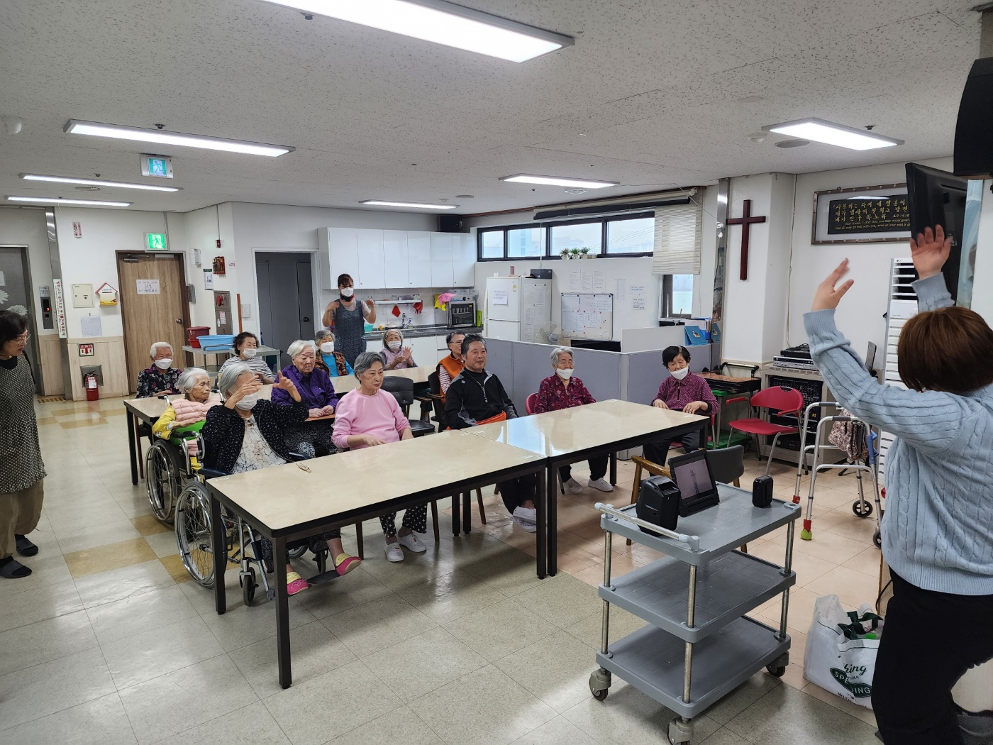 다양한 주제와 다양한 교구를 사용하여 진행하며 더불어 신나는 음악에 맞추어 춤과 운동을 유도하는 운동치료!!! 이번 달 인기 프로그램 유지 비결은 새롭고 다양한 교구와 신나는 춤동작이랍니다~~