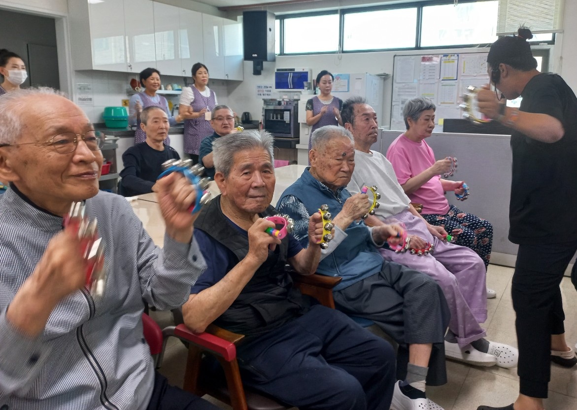 음악치료 프로그램 시간에 반달탬버린을 이용하여 강사님과 열정적인 시간을 보냈습니다. 에너지 넘치는 강사님을 따라 흥겨운 분위기를 유지하며 어르신들께서 좋아하셨습니다.