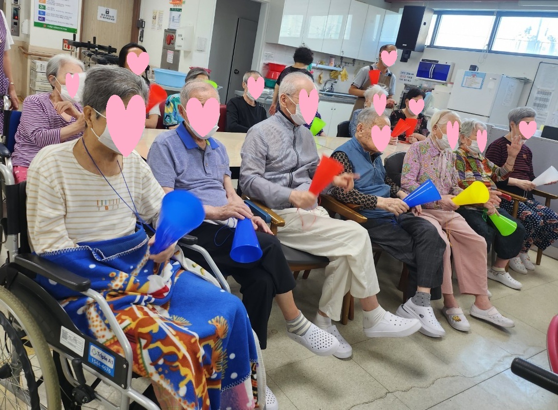 활기 넘치는 외부강사님과 메가폰이라는 악기를 이용하여 흥겨운 음악 프로그램 시간을 보냈습니다.