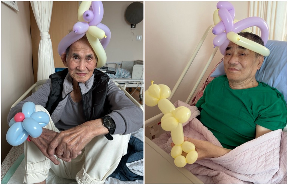 신체 활동 프로그램으로 어르신들과 풍선 놀이를 진행했습니다. 길다란 요술 풍선에 바람을 넣어 이리저리 만지며 다양한 모양을 만들어 보고 모자를 만들어 어르신들이 써볼 수 이게 해드리며 에쁜 꽃 팔찌도 만들어 눈에 즐거움도 얻었습니다.