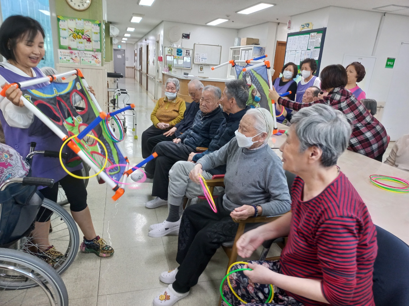 콩 주머니와 고리를 던지는 활동을 하셨습니다