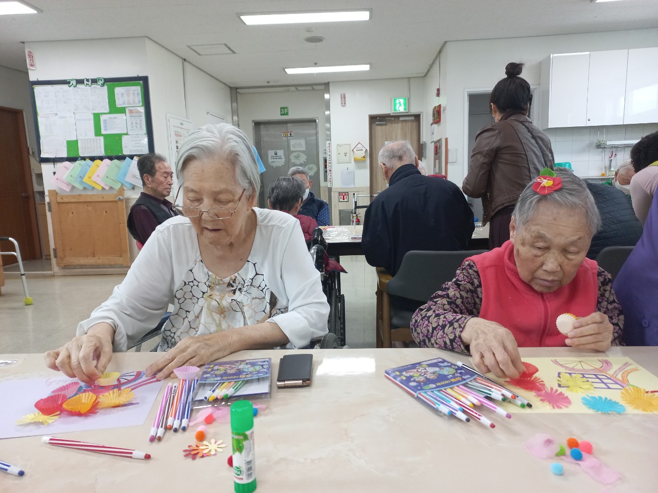 컬러유산지, 폼폼이 색방울, 모양틀 펀지(나비, 꽃)를 이용하여 입체적으로 꽃 모양을 만들어 개개인마다의 자전거 꽃 바구니를 꾸며 보는 시간을 가졌습니다. 다양한 컬러 유산지컵을 조합하여 화려한 입체 꽃을 만들어 봄기운을 느껴봤습니다.