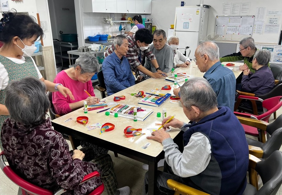외부강사님과 미술 활동을 즐겁게 했습니다. 다양한 재료들로 어르신들의 멋진 작품을 완성하였습니다~