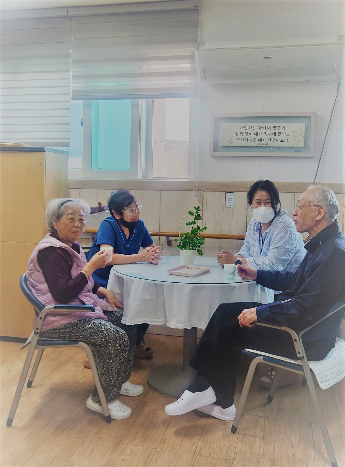 운동 및 물리 치료를 받으신 후 우리 어르신들이 좋아하시는 쌍화차, 생강차 등을 준비하여 생활실에서의 소소한 이야기와 어르신들의 의견을 수렴하고 반영하기 위한 특화프로그램이랍니다^^ "우리 어르신들이 참 좋아하신답니다!!! "