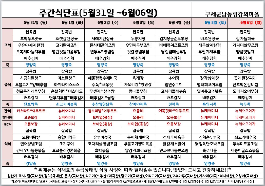 평강가족 > 자유게시판 > 6월 첫째주 식단입니다