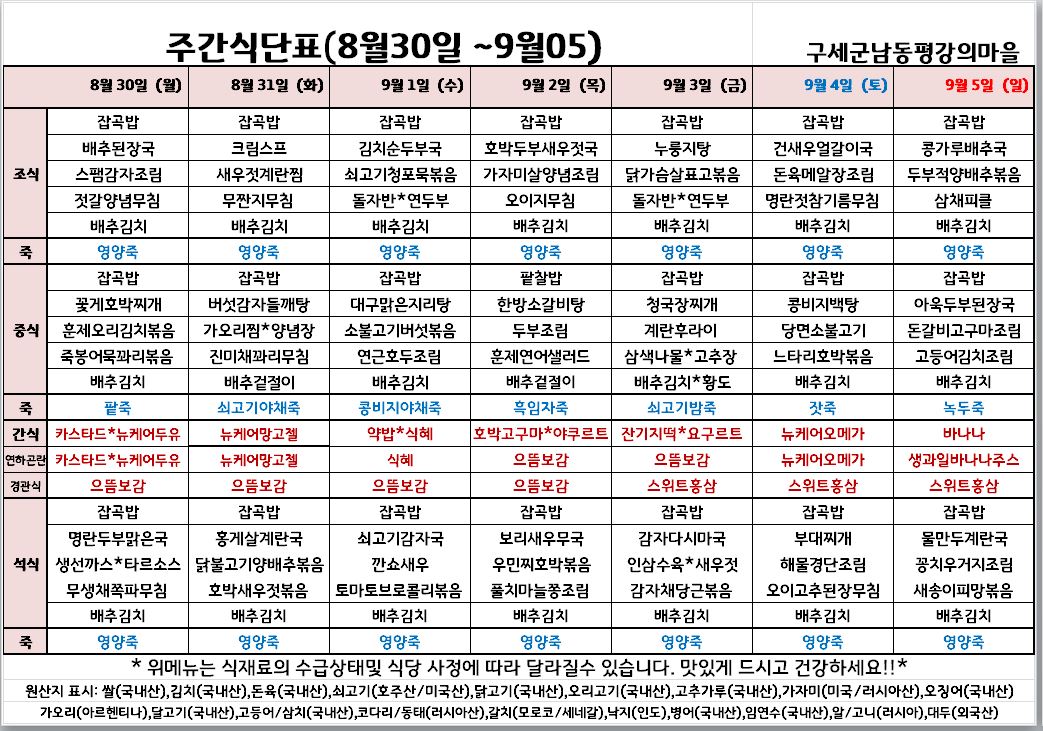 평강가족 > 자유게시판 > 8월 다섯째주 식단입니다