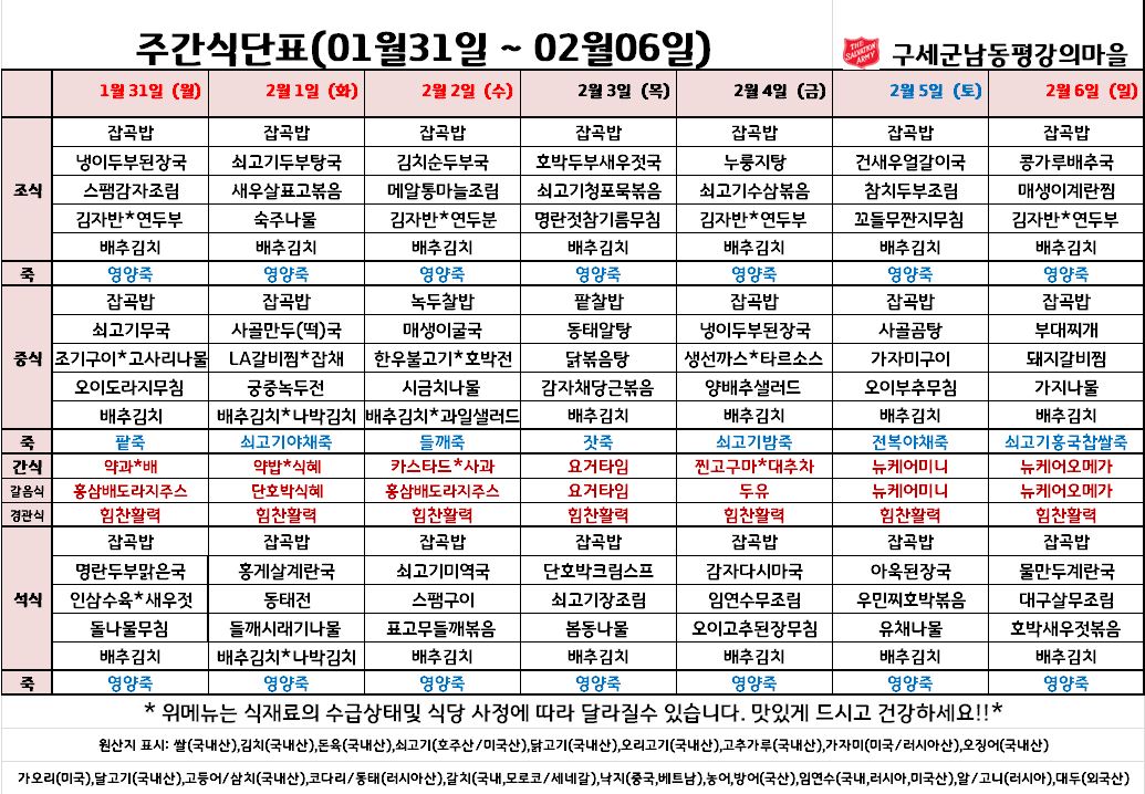 평강가족 > 자유게시판 > 2월 첫째주 식단입니다