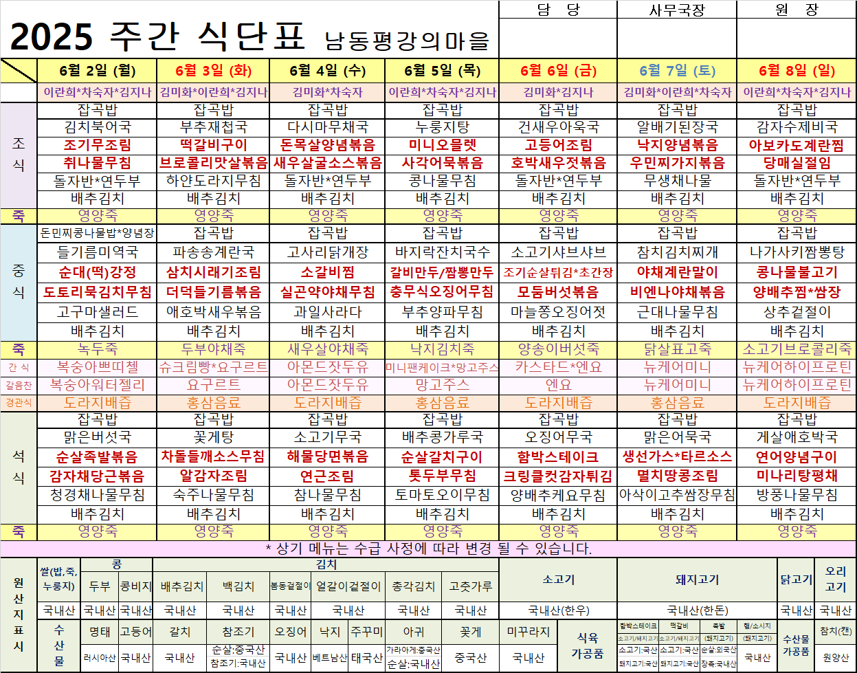평강가족 > 자유게시판 > 6월 첫째주 식단입니다.