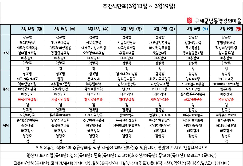 평강가족 > 자유게시판 > 3월 3째주 식단표 입니다.