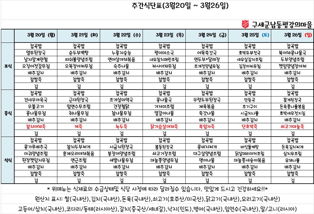 평강가족 > 자유게시판 > 3월 4째주 식단표 입니다.