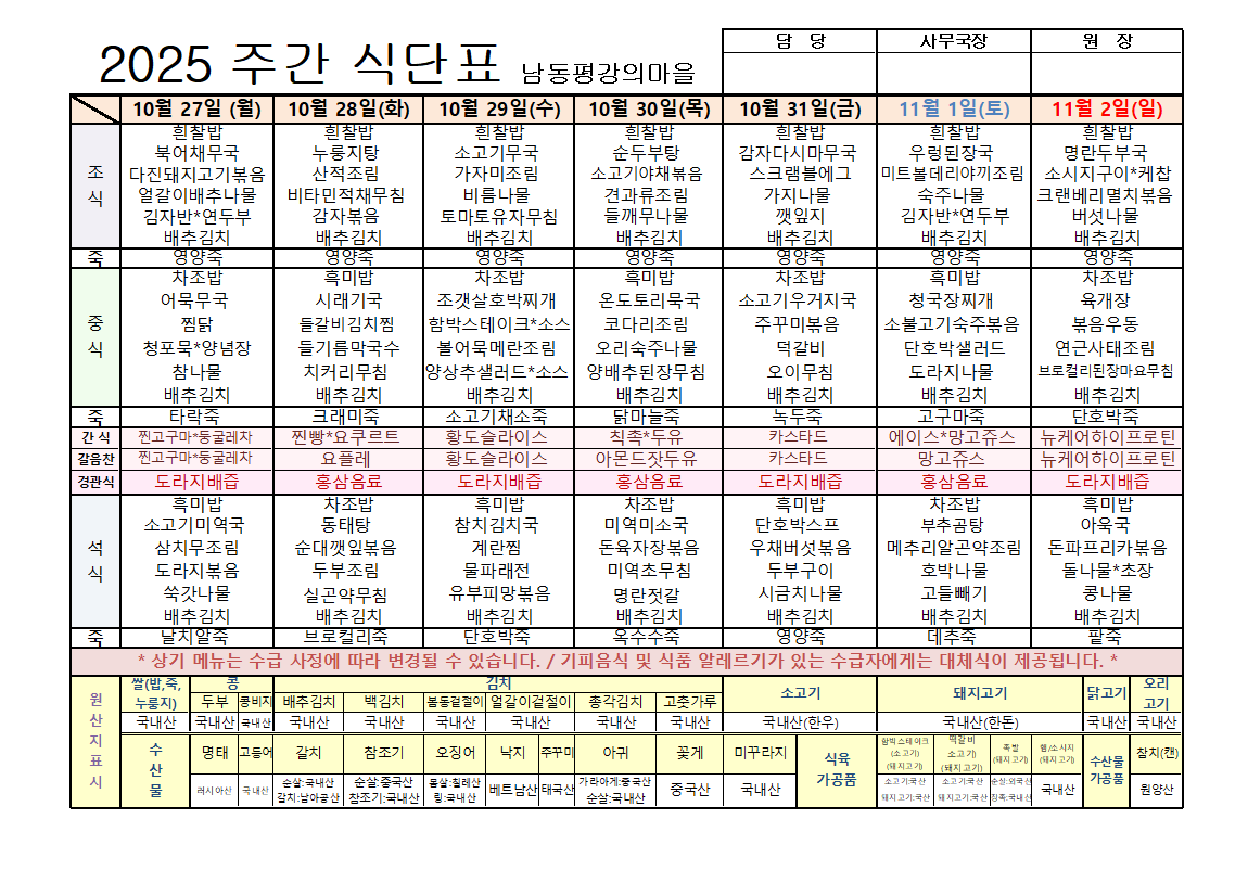평강가족 > 자유게시판 > 10월 넷째주 식단입니다.